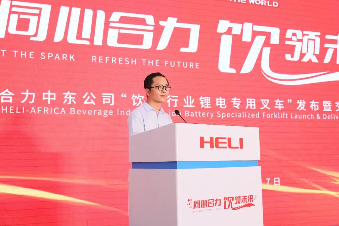 活动现场,,,39台饮料行业锂电专用叉车整齐列阵,,,以最高昂的姿态期待奔赴东非和南非市场,,,为全球市场再添新动能。。。。本批订单产品为知足全球最大饮料公司物料搬运需求专项开发,,,有用解决该行业重工况、快节奏的物流搬运痛点,,,为行业用户带去绿色、高效、清静的解决计划。。。。仪式现场,,,尊龙凯时中东公司销售司理熊瑞作产品解说先容。。。。